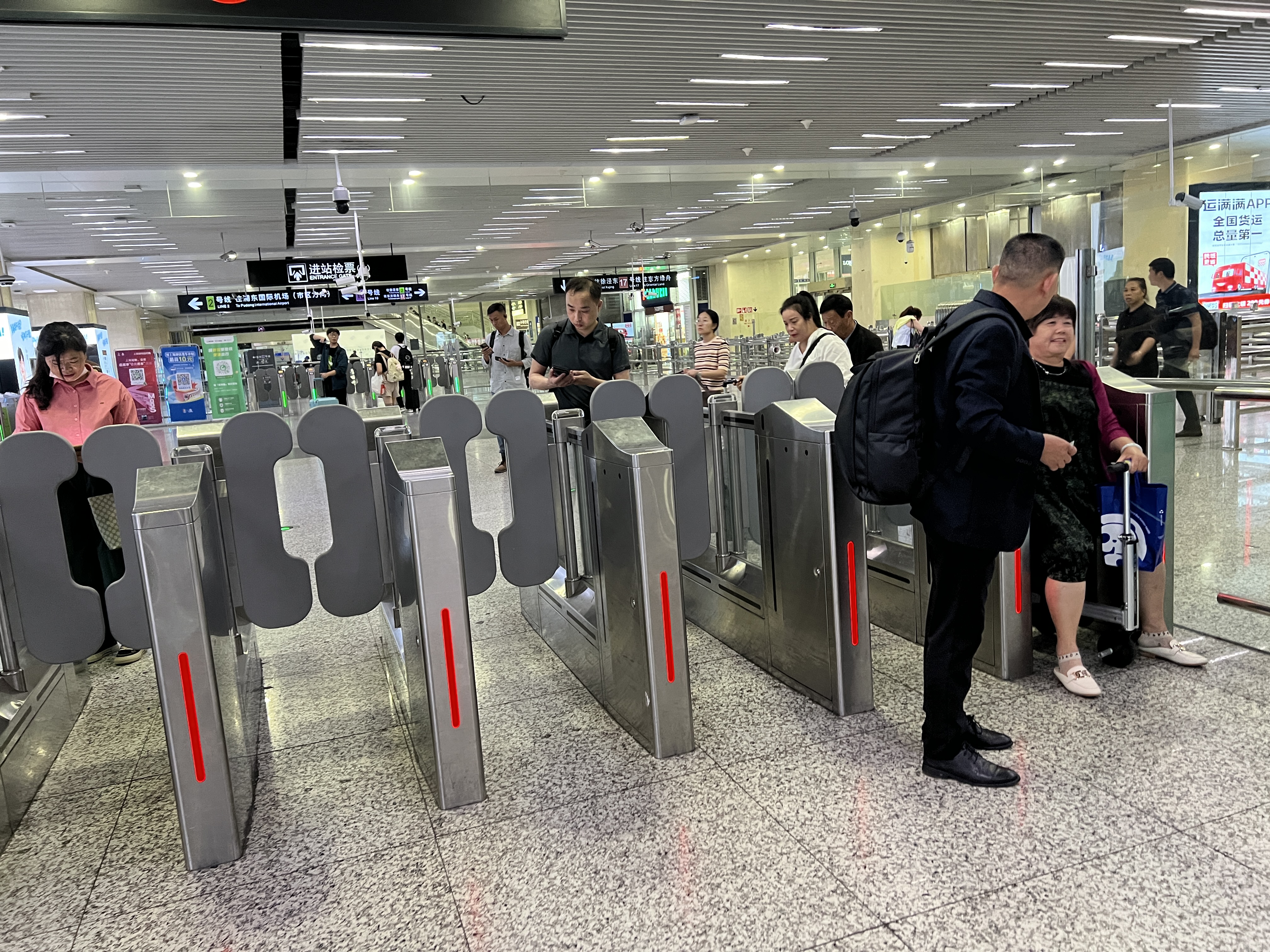 地下鉄2号線南京东路駅の7番出口にコインロッカー。いつも使用中で使えない。